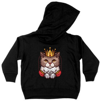 King Cat Toddler Hoodie – Funny Toddler Hooded Sweatshirt – Cartoon Kids’ Hoodie