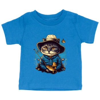 Cat Fishing Baby Jersey T-Shirt – Cartoon Baby T-Shirt – Fisher T-Shirt for Babies