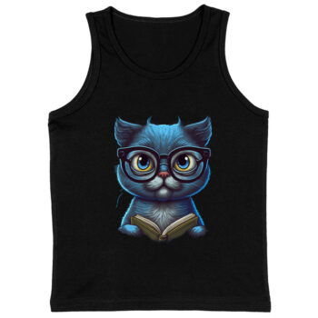 Cat Reading Book Kids’ Jersey Tank – Cat in Glasses Sleeveless T-Shirt – Cute Kids’ Tank Top